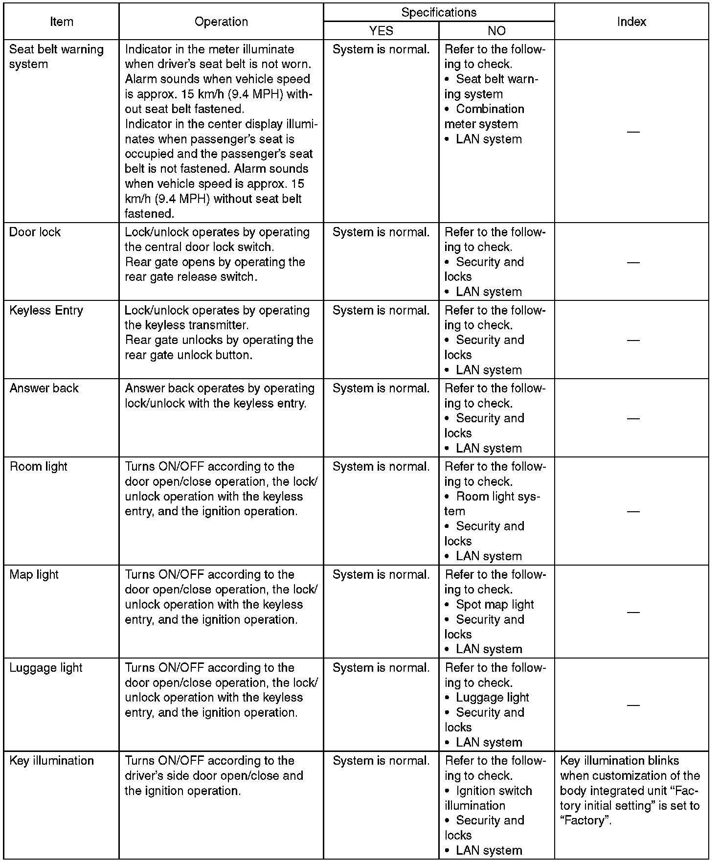 General Diagnostic Table
