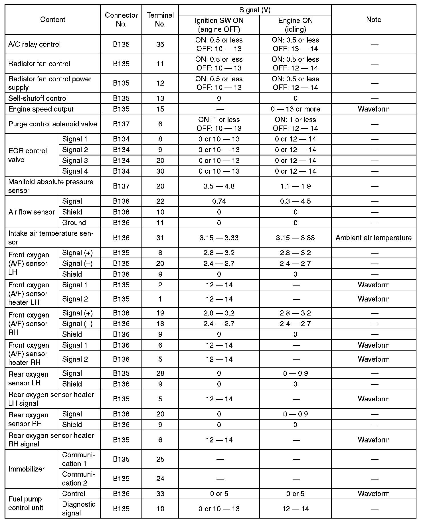 Engine Control Module (ECM) I/O Signal