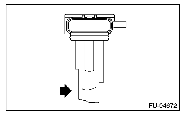 2. Check the voltage changes when air is blown to the mass air flow sensor unit in arrow direction.