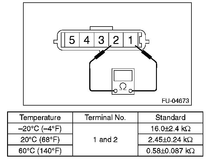 Measure the resistance between intake air temperature sensor terminals.