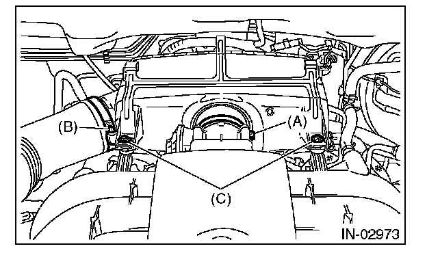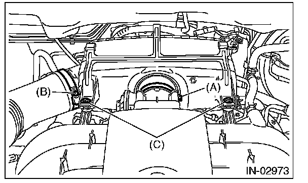 4. Remove the bolt (C) which secures air intake chamber and collector cover bracket to the stay.