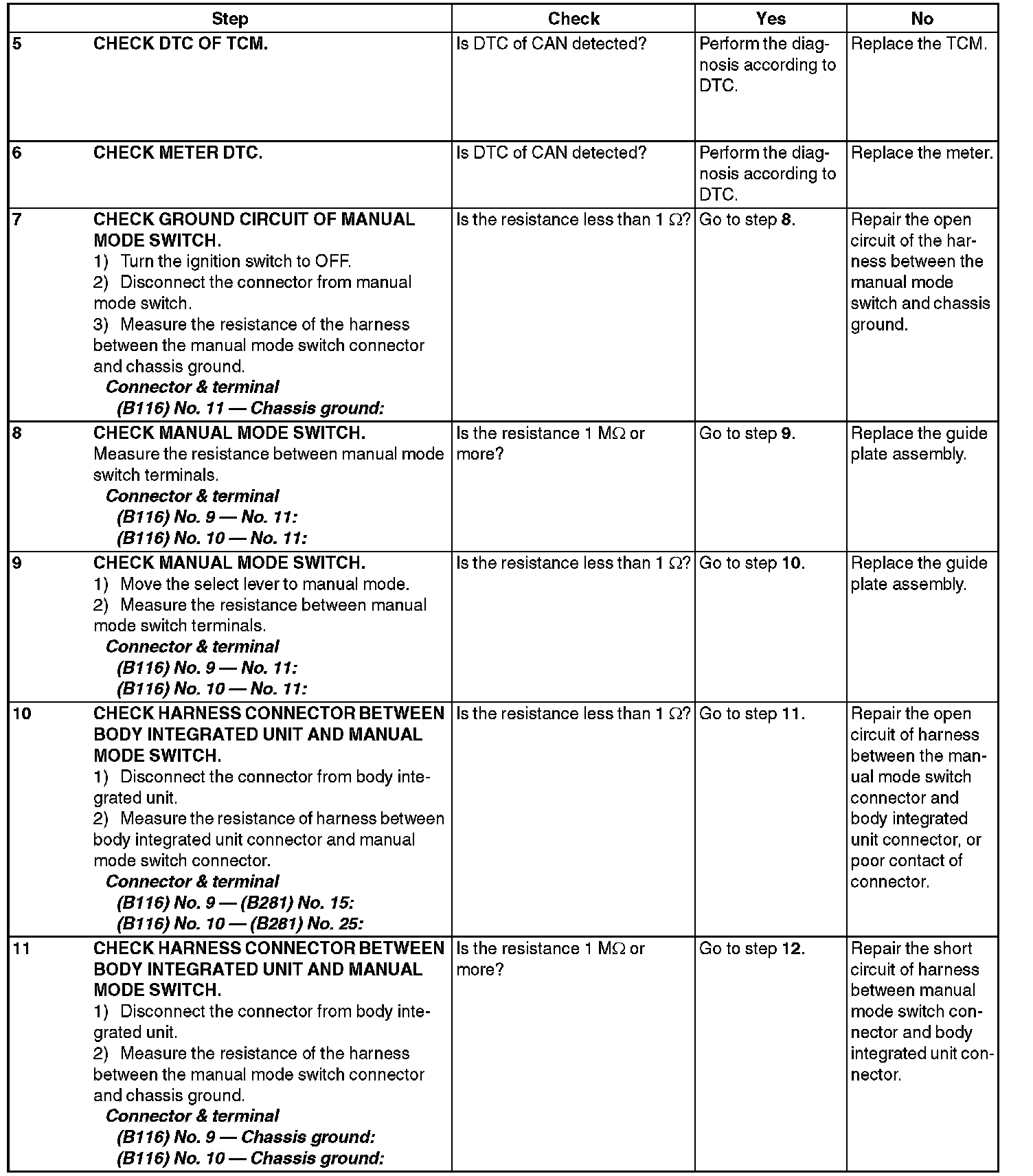 Diagnostic Procedure without Diagnostic Trouble Code (DTC)CHECK MANUAL MODE SWITCH