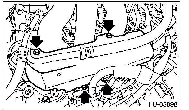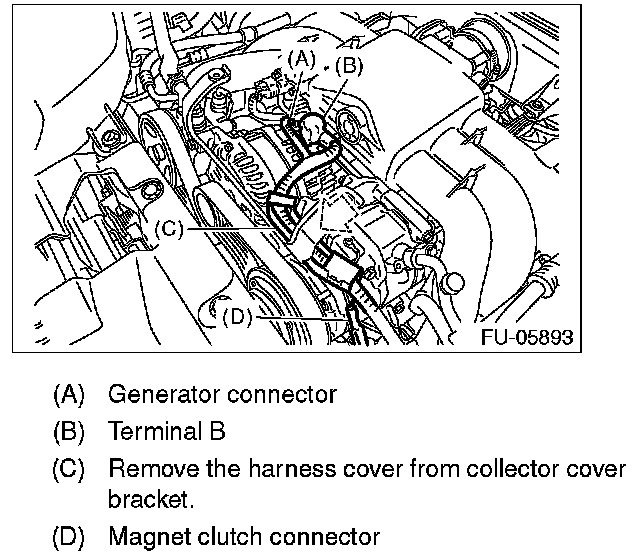 (4) Loosen the bolt (C) which secures air intake chamber and collector cover bracket to the stay.