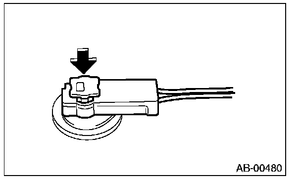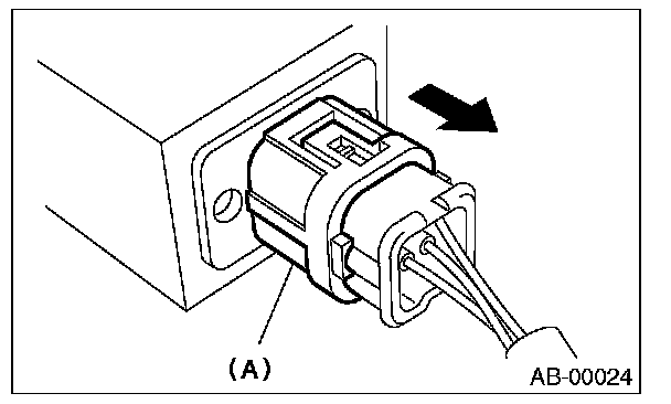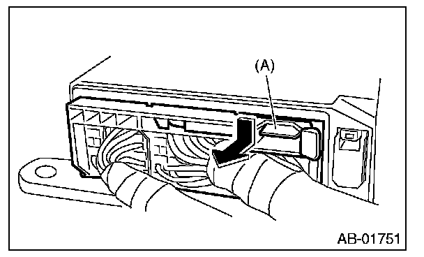 Push lock arm (A), then disconnect the connector.