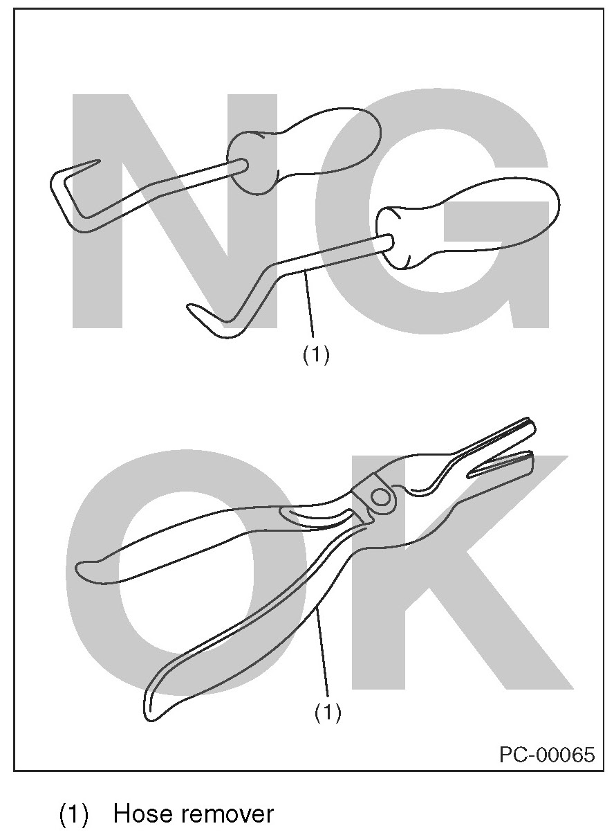- Do not use a pointed hose remover (hose plucker) when using a general hose remover. It may damage the pipe surface or the hose.