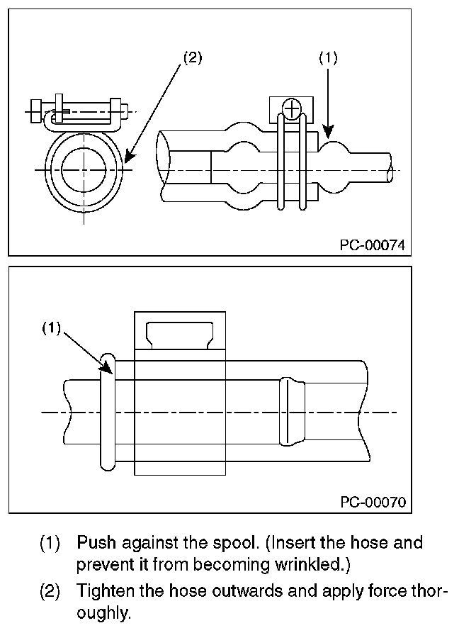 - Perform the operation with the hose removed. If the operation is performed without removing the hose, it may damage inner surface of the hose.
