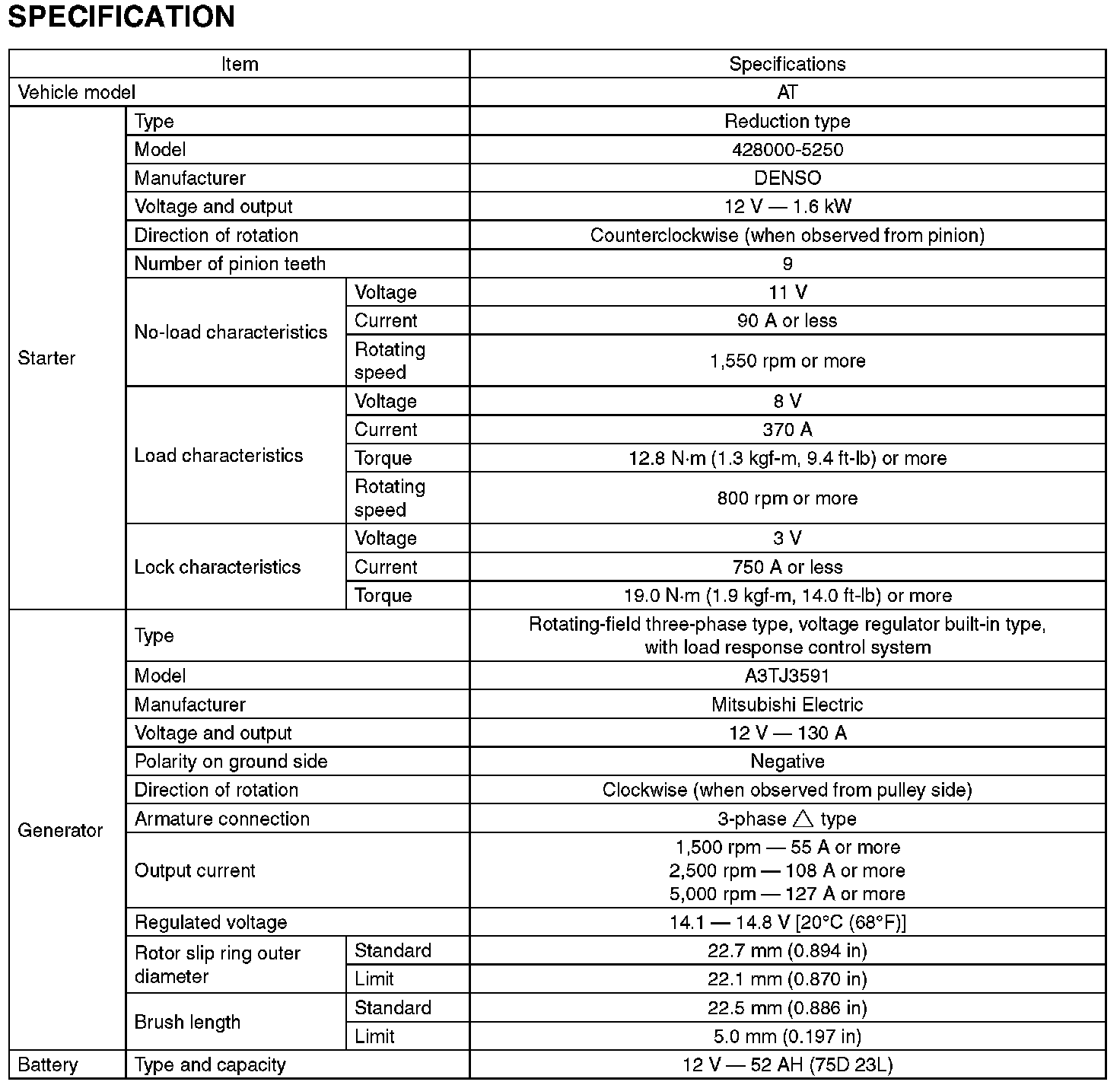 Specifications