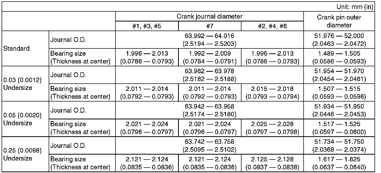 Crankshaft oil clearance 0.010 - 0.030 mm (0.0004 - 0.0012 in)