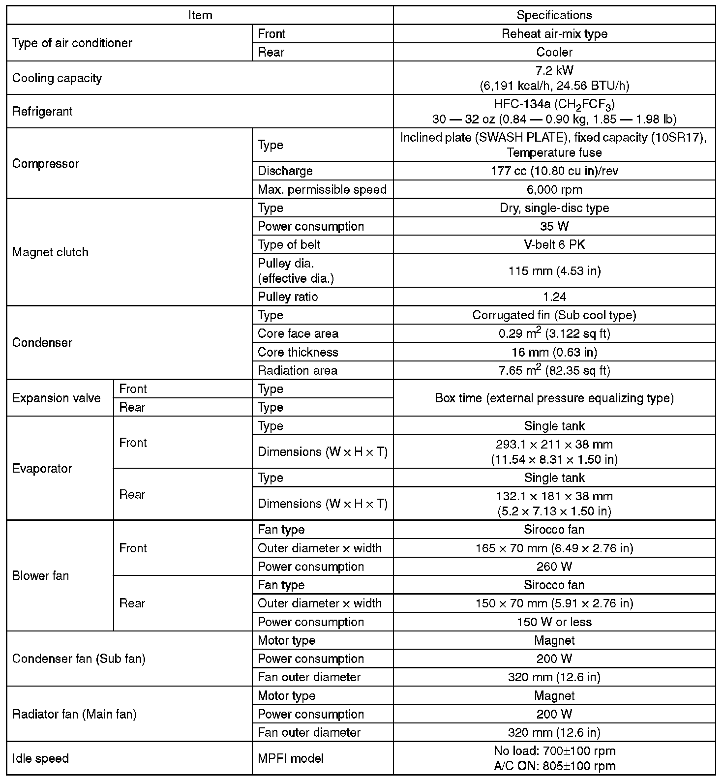 Single A/C model (front only)