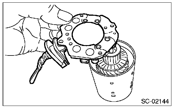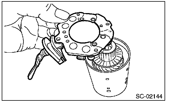 NOTE: Separate the starter cover by pressing the brush holder assembly using the screws so that the assembly stays onto the armature side.