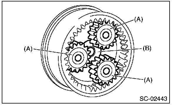 8. Remove the planetary gear (A) and washer (B) from internal gear.