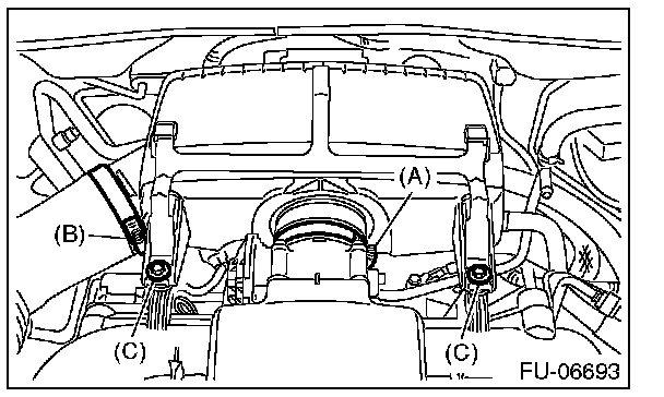 6. Loosen the bolt (C) which secures air intake chamber and collector cover bracket to the stay.