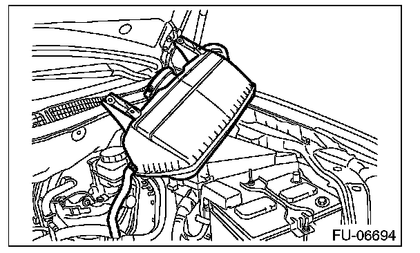 5. Loosen the clamp (B) which connects intake boot to air intake chamber.