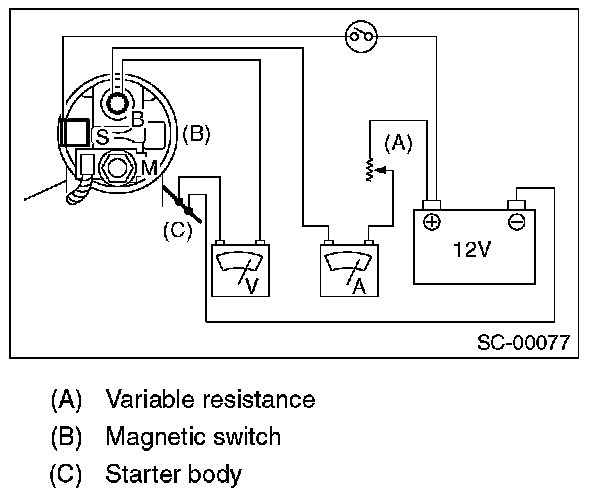Apply the specified braking torque to starter. The condition is normal if the current draw and rotating speed are within standard.