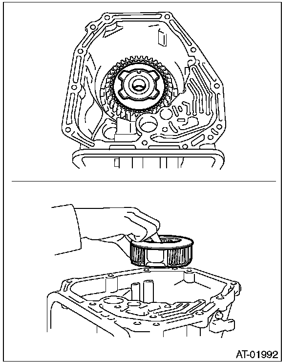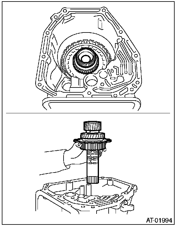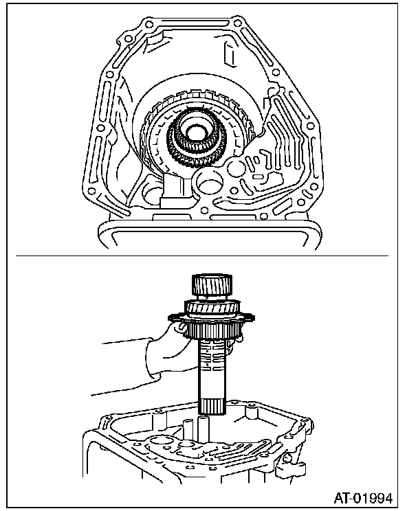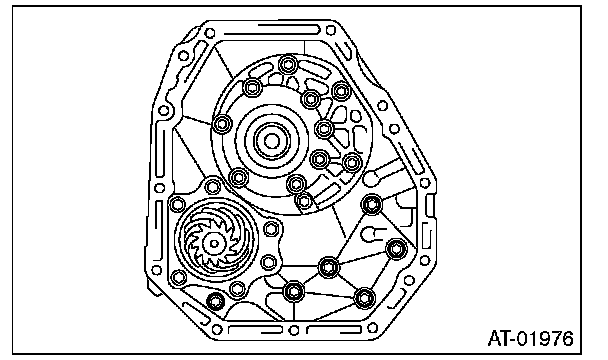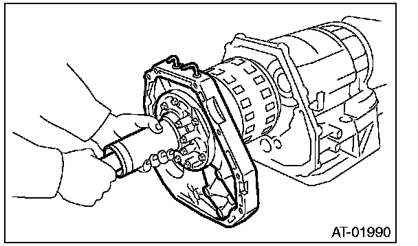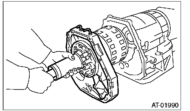 (2) Install the oil pump cover to AT main case while supporting the input clutch shaft and oil pump housing with your hand.