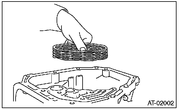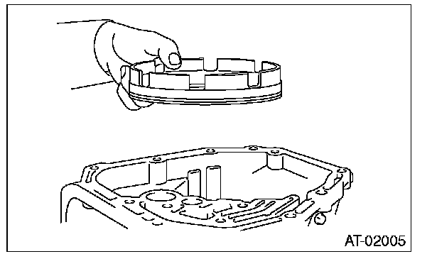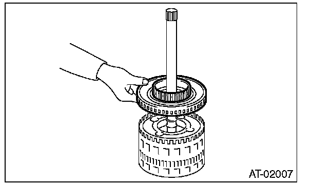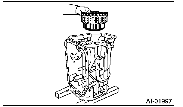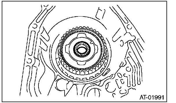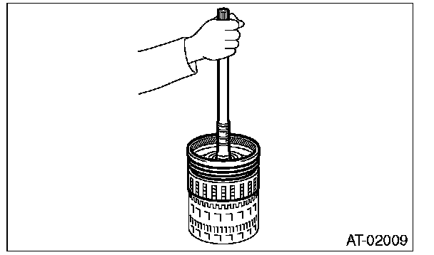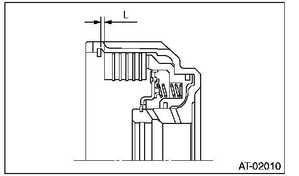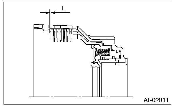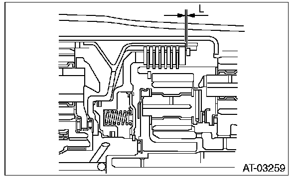 ^ Check the clearance of the input clutch. Measure the clearance "L" between snap ring and retaining plate using a thickness gauge. If it is out of specification, replace the entire input clutch assembly.