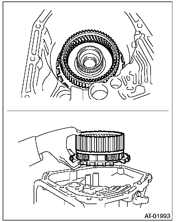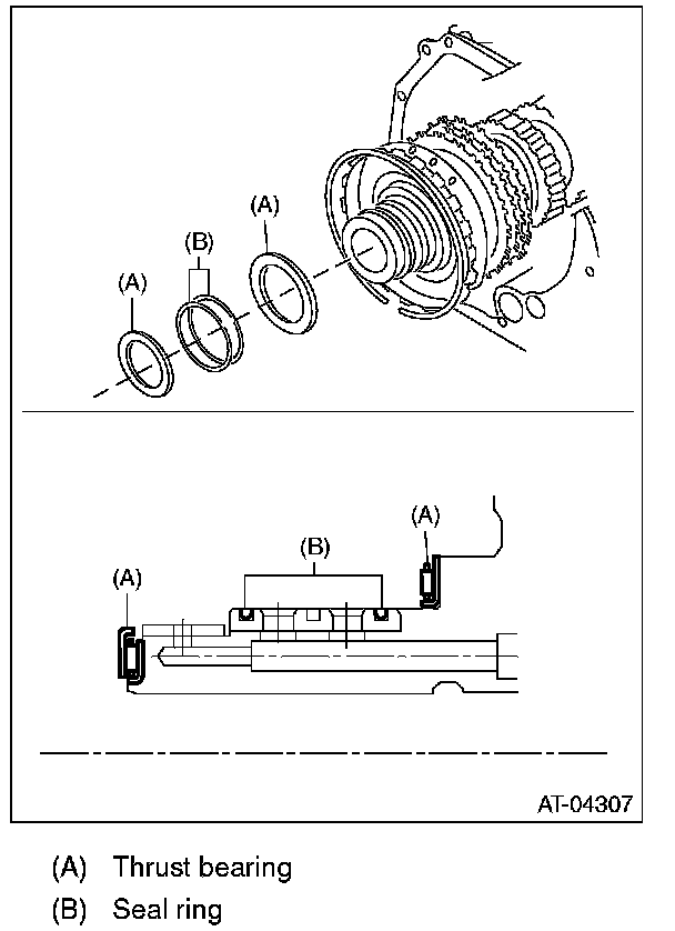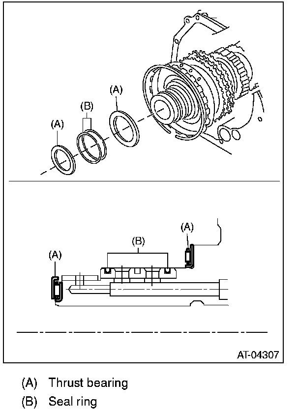 15) Install the thrust needle bearing of the high & low reverse clutch.