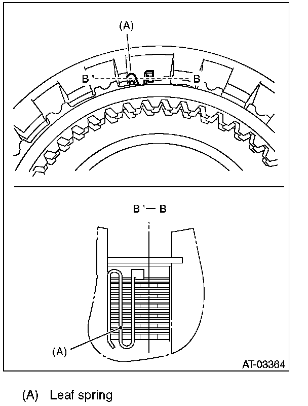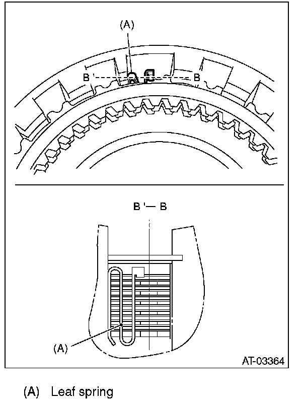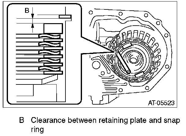 (2) Measure the clearance "B" between the retaining plate and snap ring using a thickness gauge.