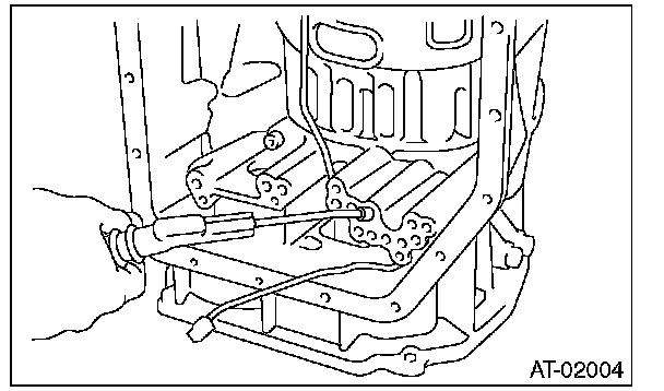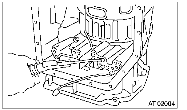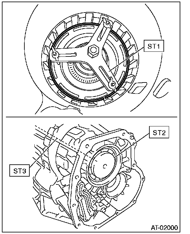 1) Using the ST, measure the height "A" from the AT main case mating surface to convex surface of oil pump cover.