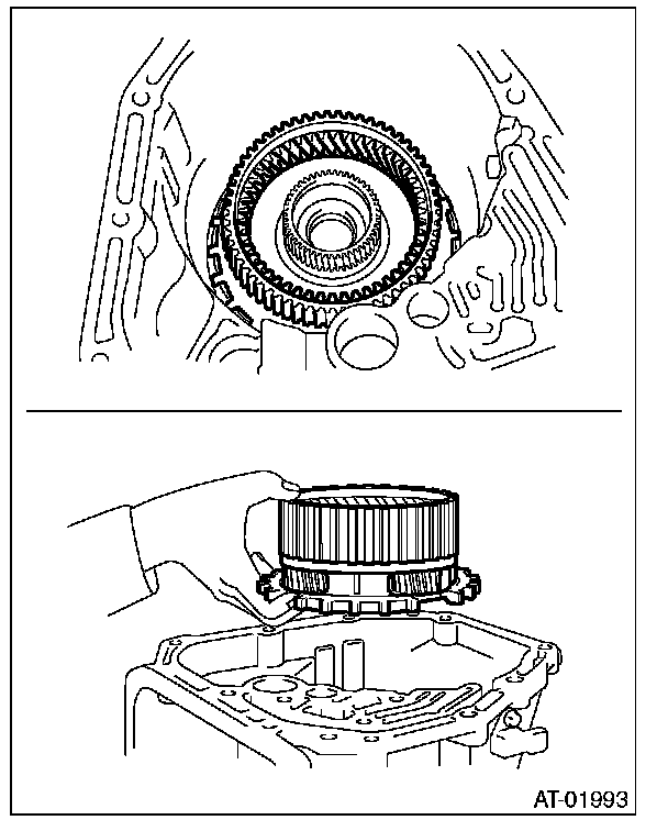 15) Remove the thrust needle bearing of high & low reverse clutch.
