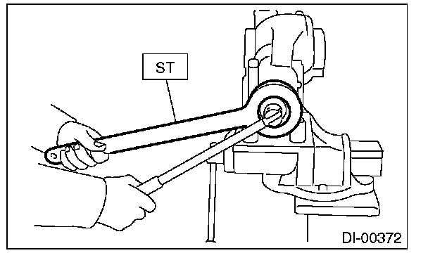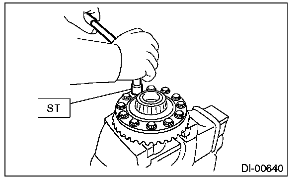 12) Using the ST, loosen the hypoid driven gear bolt and remove the hypoid driven gear.