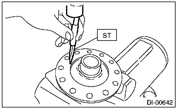 13) Remove the spring pin from hypoid driven gear side using ST.