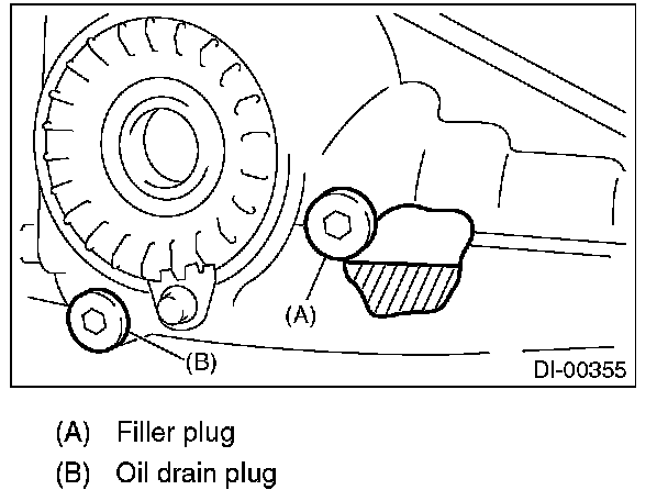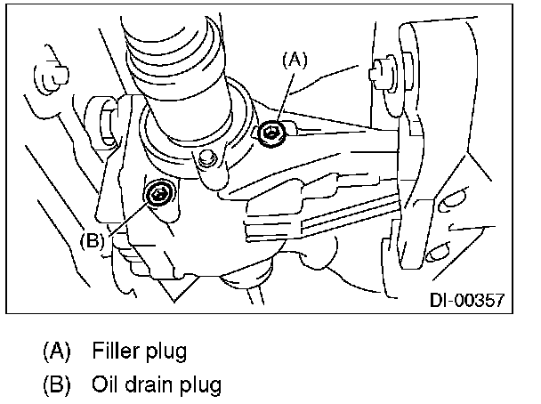 2) Remove the oil drain plug and filler plug, and drain the gear oil.