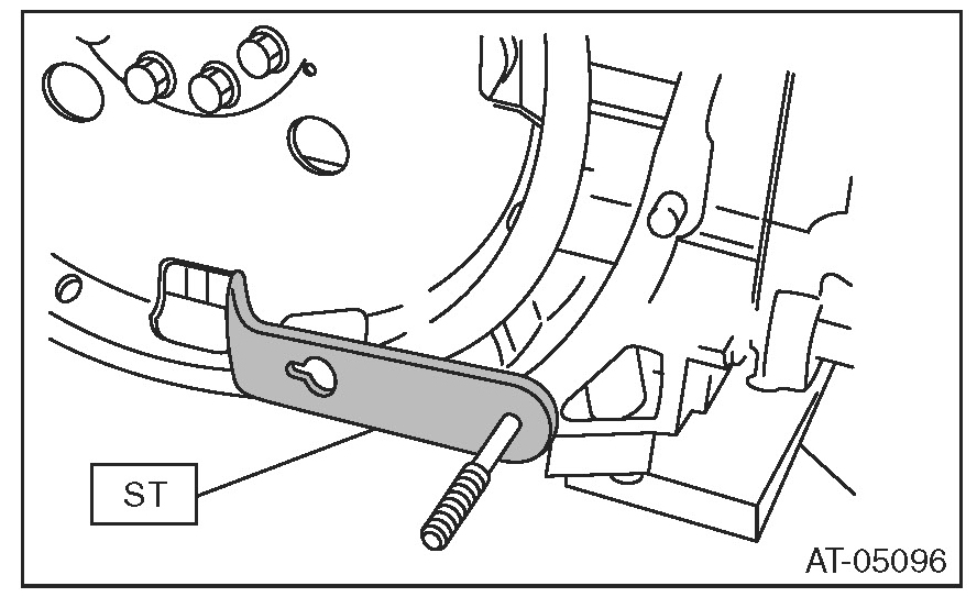 2) Use the ST to lock the crankshaft, and remove the drive plate.