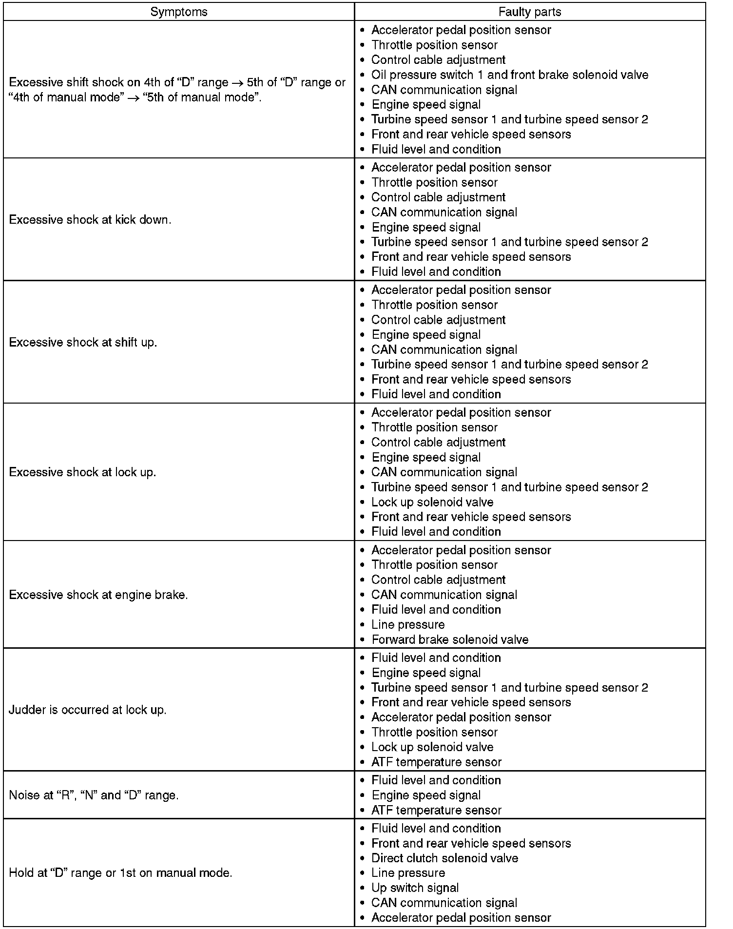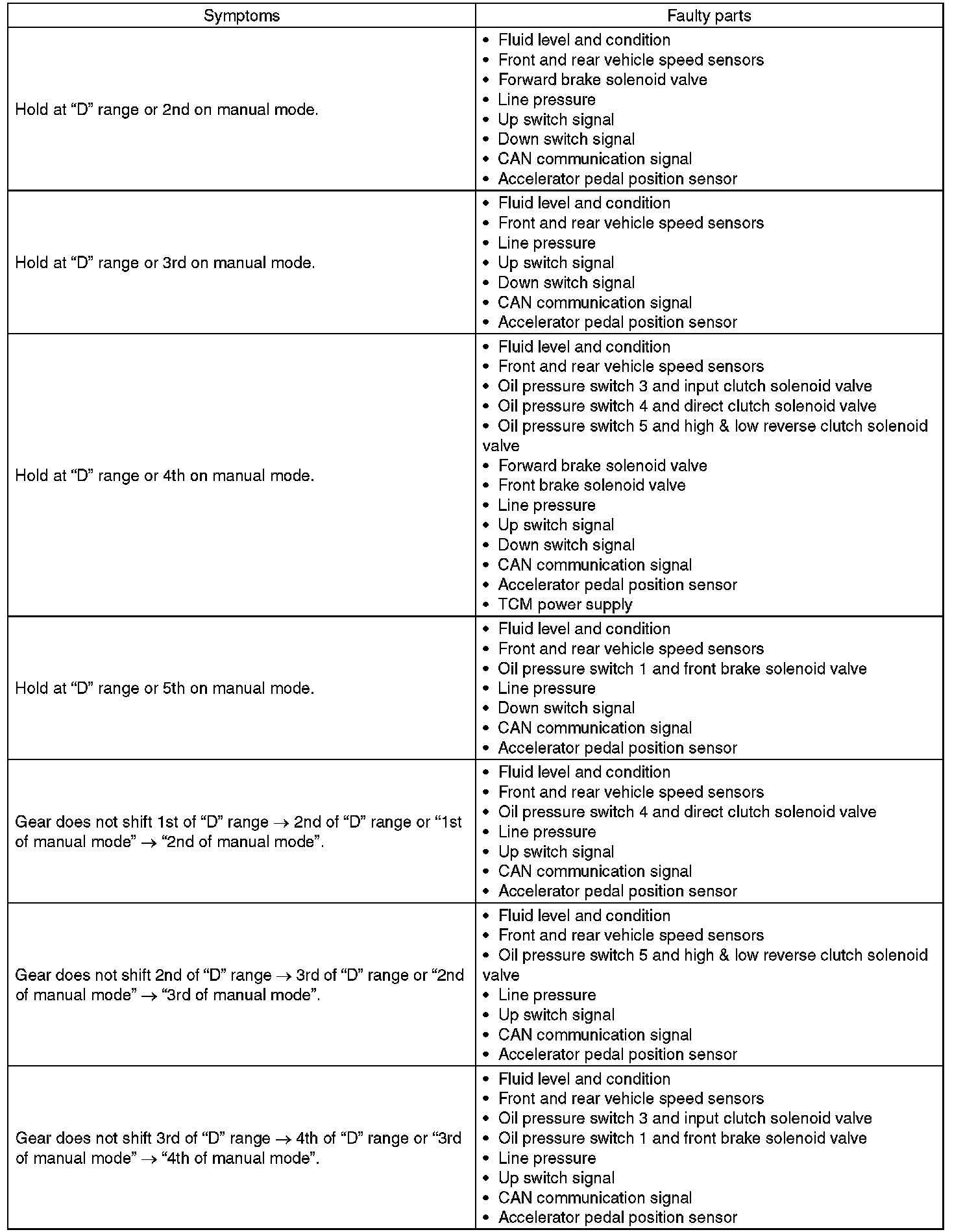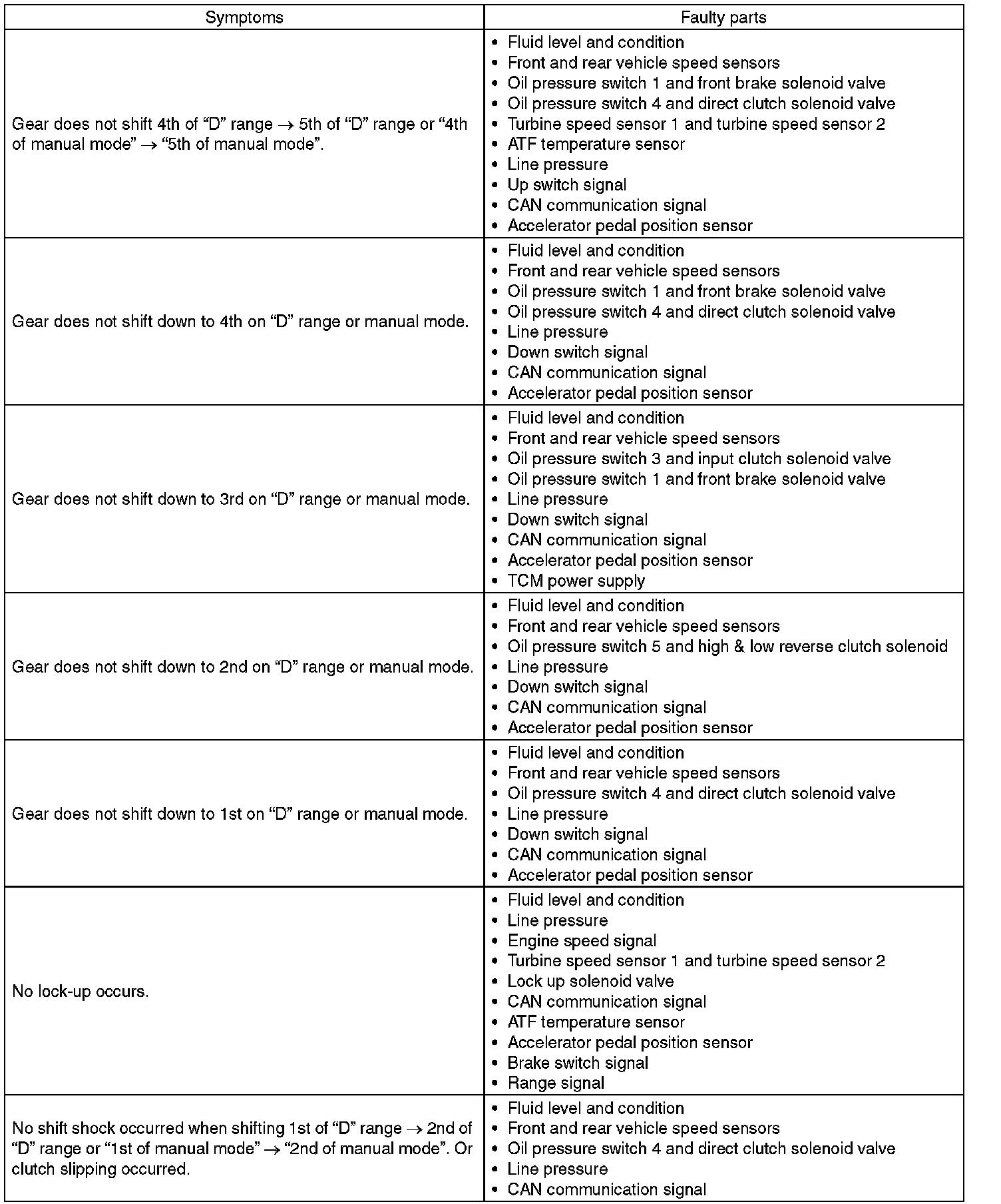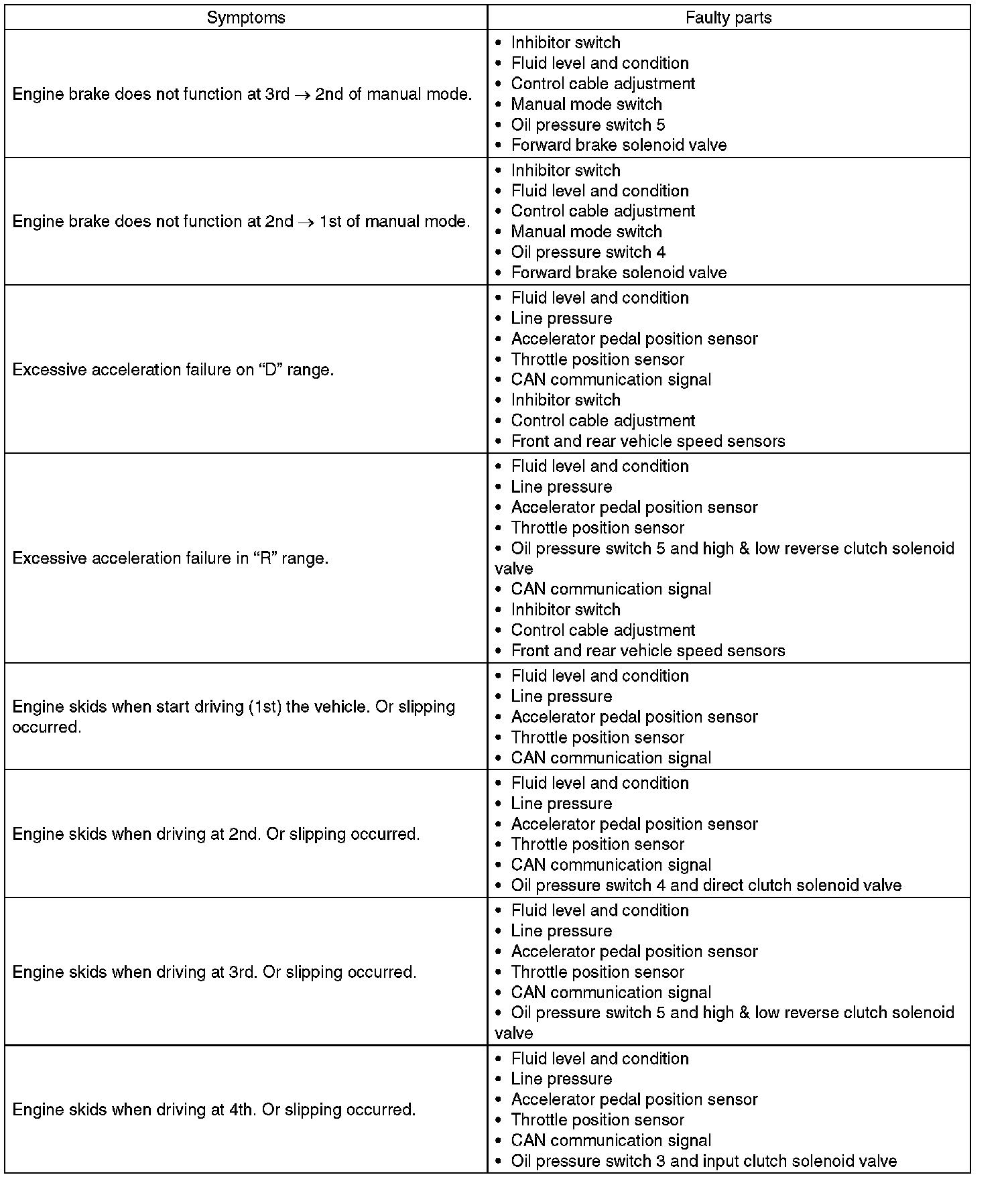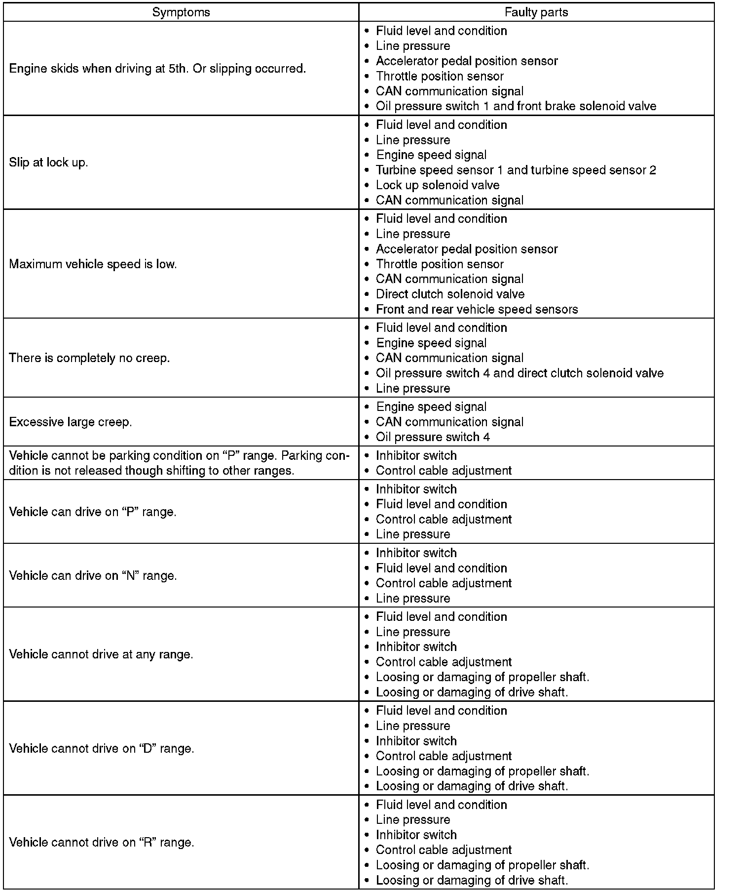 General Diagnostic Table