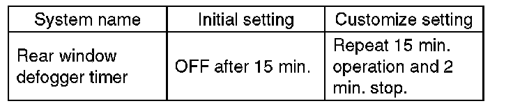 NOTE: Rear window defogger system can be customized on the Subaru Select Monitor.