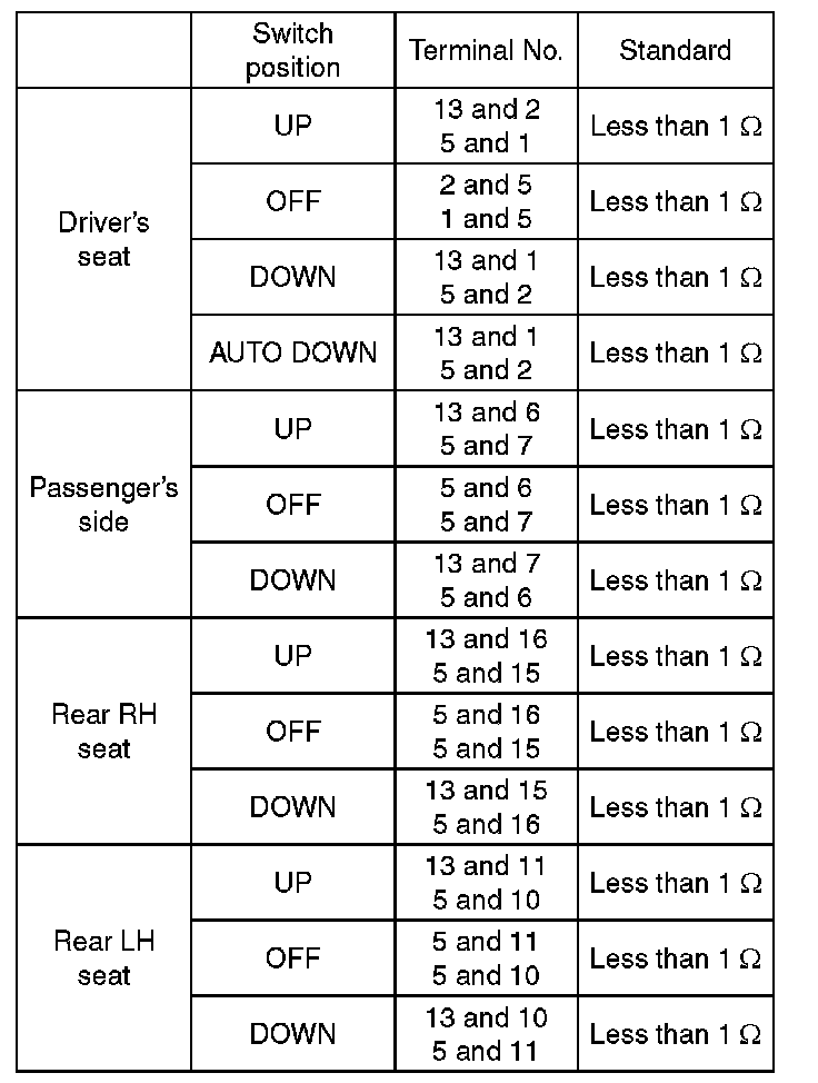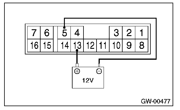 - Make sure the battery voltage is applied to the terminal No. 13 (+) and 5 (-) when measuring resistance, because the main switch is controlled by microcomputer.