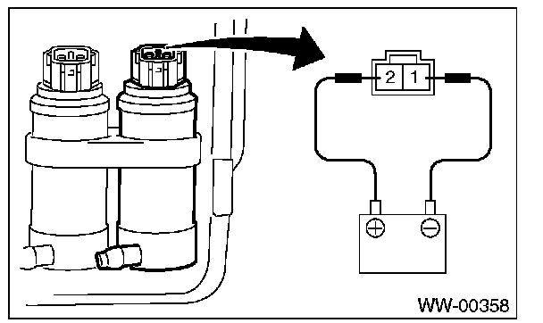 Apply battery voltage to the connector terminal of the washer motor and make sure the motor operates.
