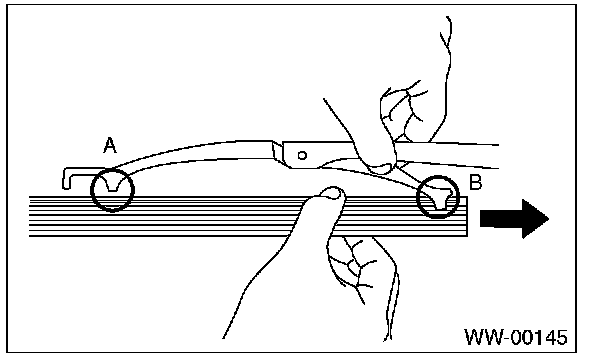 Pull side (A) of the wiper rubber stopper and remove the rubber from the blade assembly.