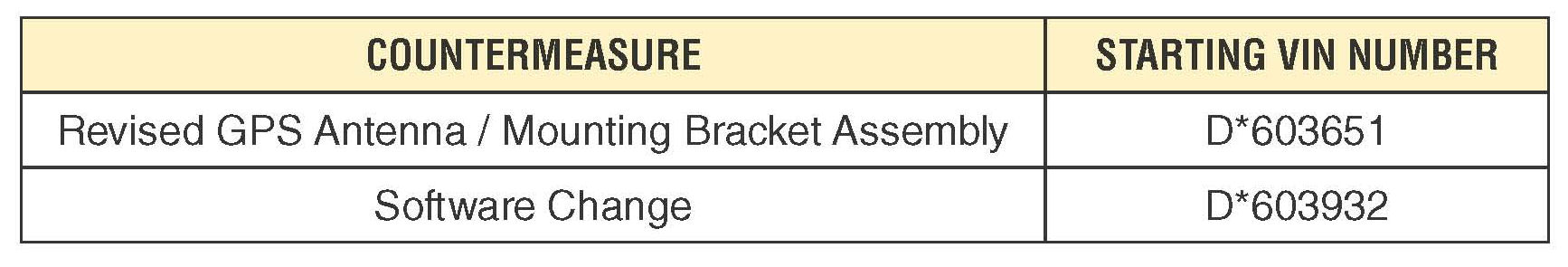 The purpose of this bulletin is to provide installation procedures for changes to the Fujitsu-Ten navigation system's operating software and GPS antenna / mounting bracket assembly. Countermeasures have been developed to address customer concerns of GPS signal loss, incorrect vehicle location or vehicle direction (arrow) display and system "freeze". The countermeasures consist of an exchange SD card containing updated operating software to address these customer concerns in addition to a revised GPS antenna /mounting bracket assembly which repositions the GPS antenna.