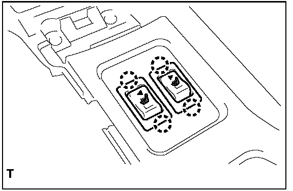 1. Engage 4 claws and install 2 seat heater switches to the console box ASSY.