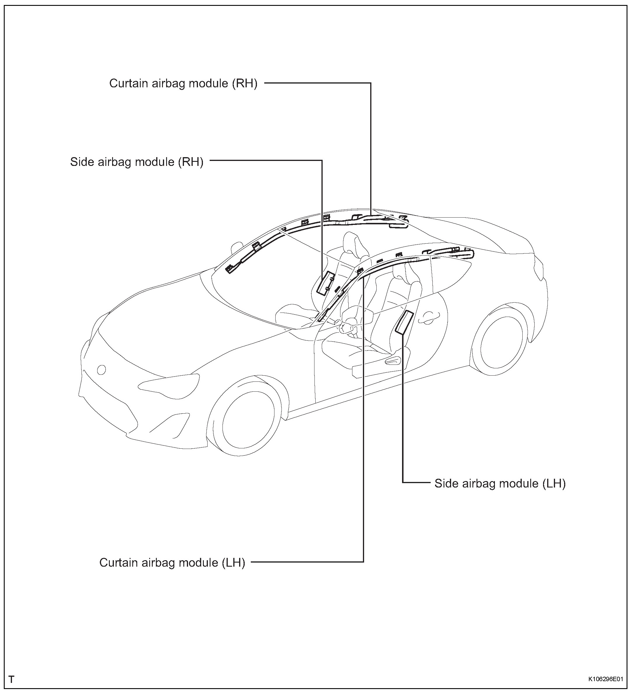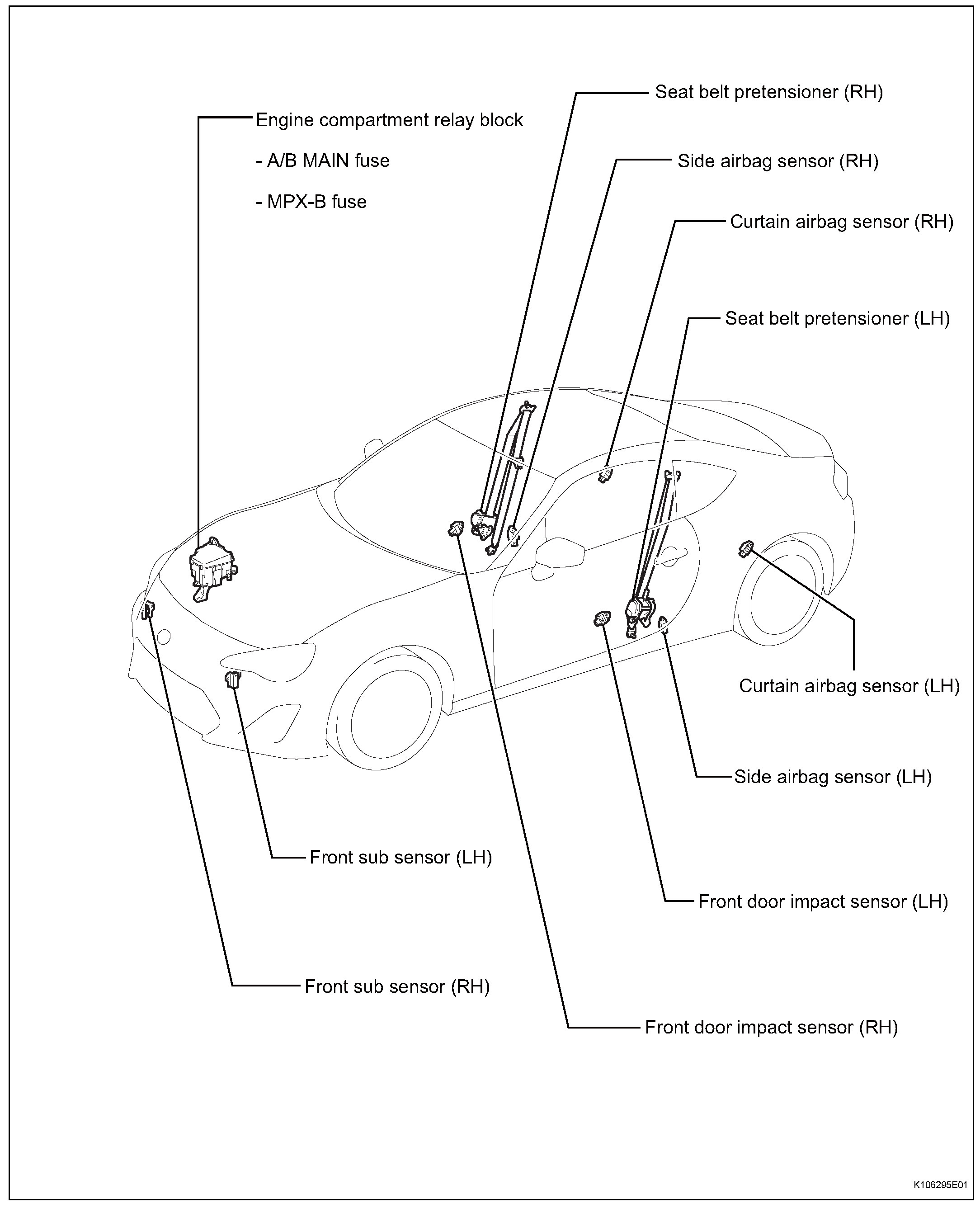 b. If impacts are likely to occur to the front sub sensors, front door impact sensors, side airbag sensors, curtain airbag sensors, satellite safing sensor or airbag control module remove each sensor as necessary beforehand.