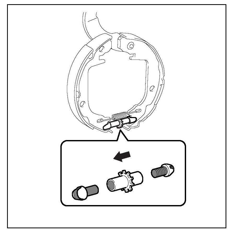9. Installation of parking brake shoe adjusting screw set LH