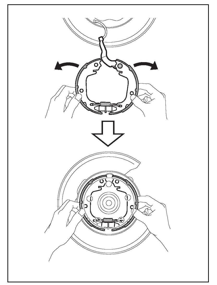 (3) Spread the parking brake shoe kit outward by hand and align it to the backing plate.