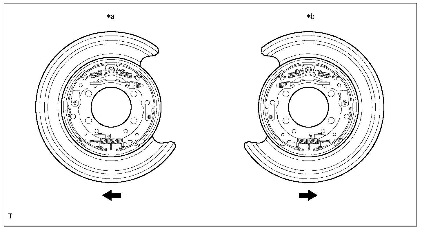 The direction of parking brake shoe adjusting screw set is different for RH and LH. Be careful not to install them in the wrong direction.