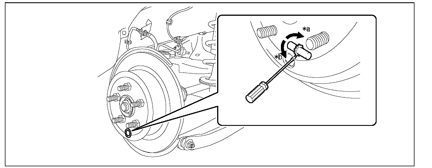 (3) Using a flat tip screwdriver, turn the adjusting screw in the extension direction until the parking brake shoe is in close contact with the disc.