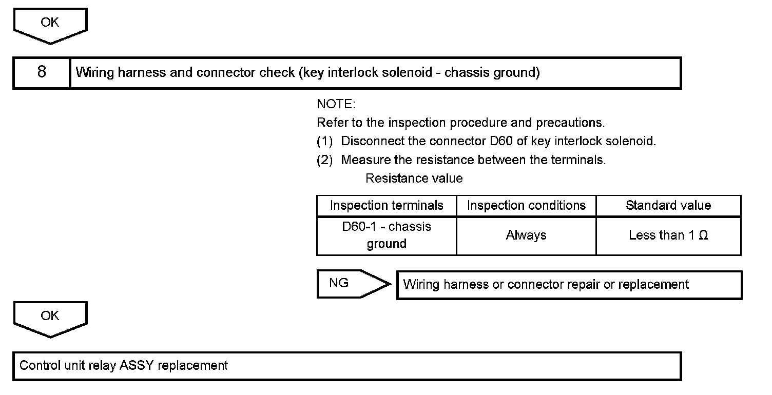 The control unit relay ASSY outputs a signal to the key interlock solenoid when the ACC signal and P signal are input.