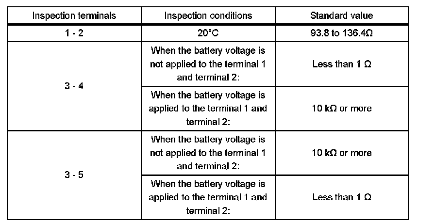 (1) Check the resistance between relay connector terminals.