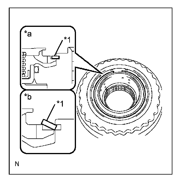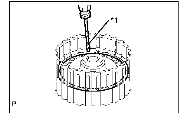 (5) Insert the gap of the snap ring end into the No.1 clutch balancer as shown in the figure.