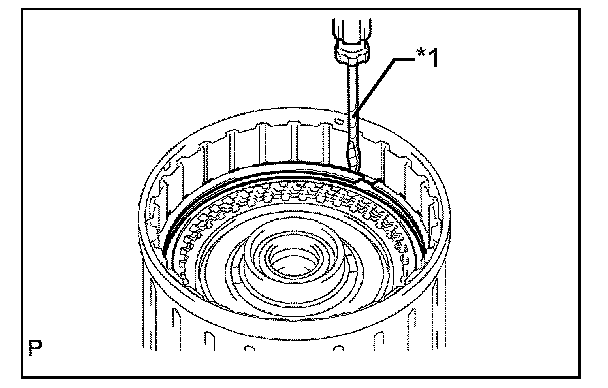 (1) Use a flat tip screwdriver to remove the snap ring from the reverse clutch piston SUB-ASSY.