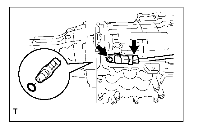 (2) Remove the bolt, and then remove the transmission revolution sensor (NT) and the O-ring.