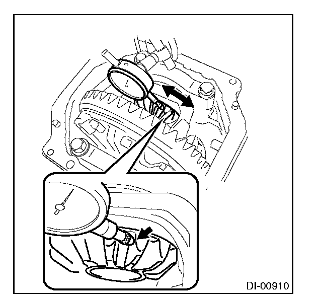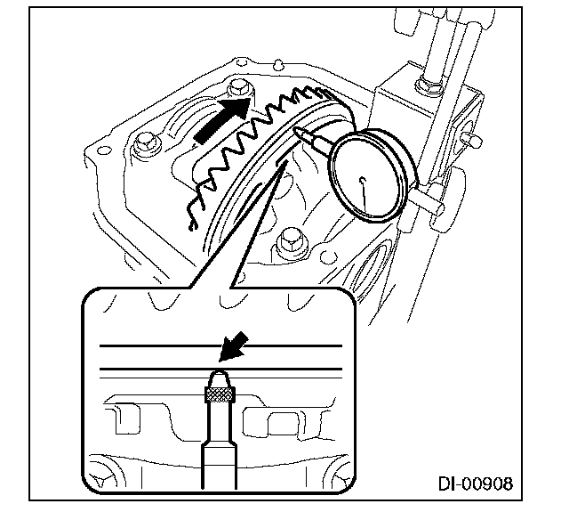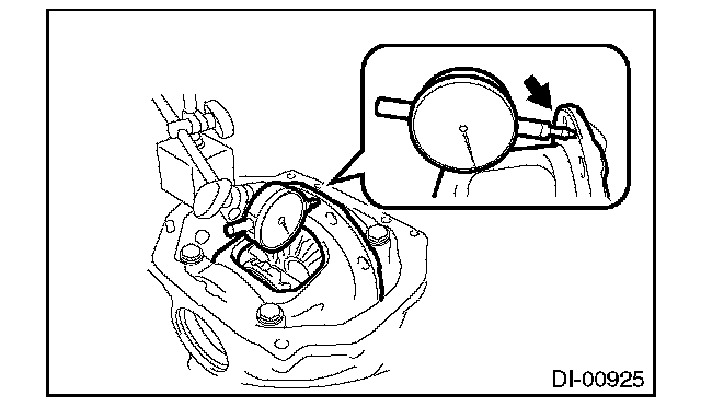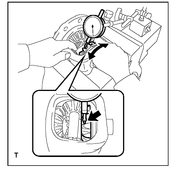 (1) Contact a dial gauge at a right angle to the tooth surface end of the differential side gear.