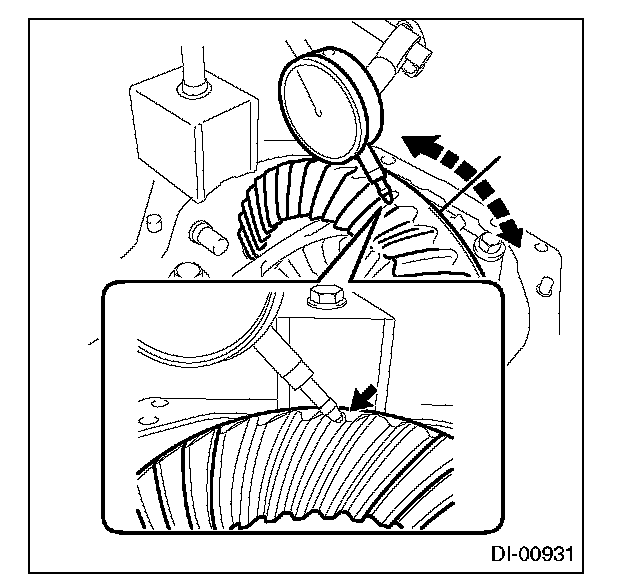 6. Inspection of backlash between differential ring gear and differential drive pinion