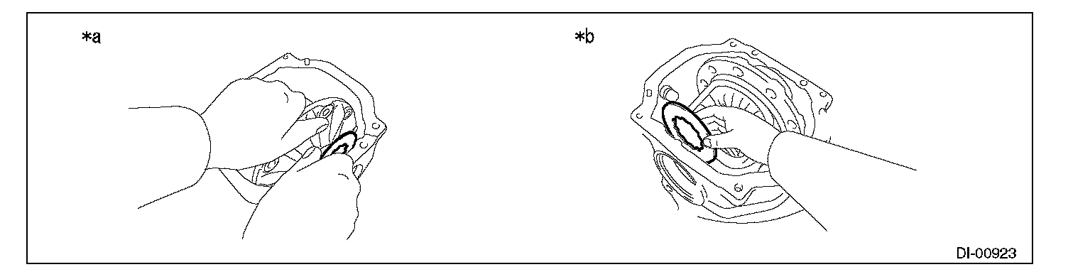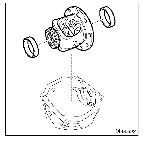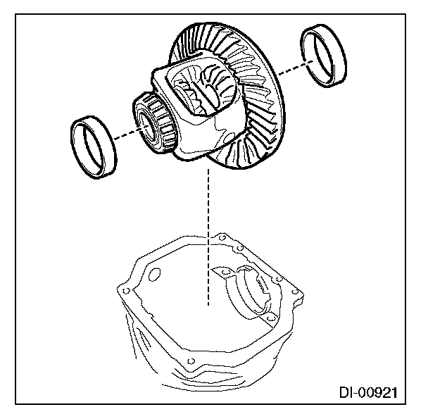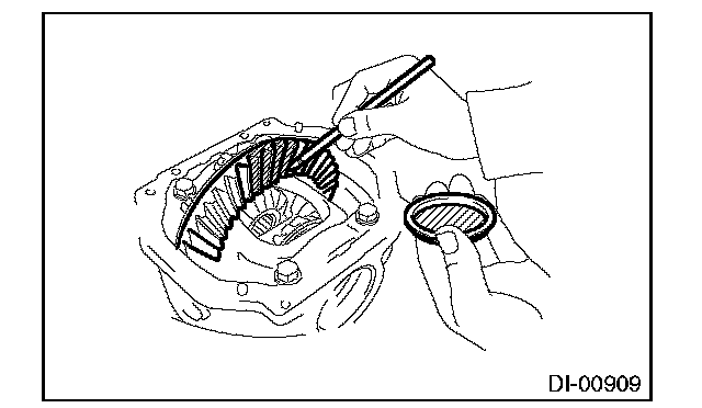 Be careful not to deform the cage of the differential case bearing.(When the bearing is reused)