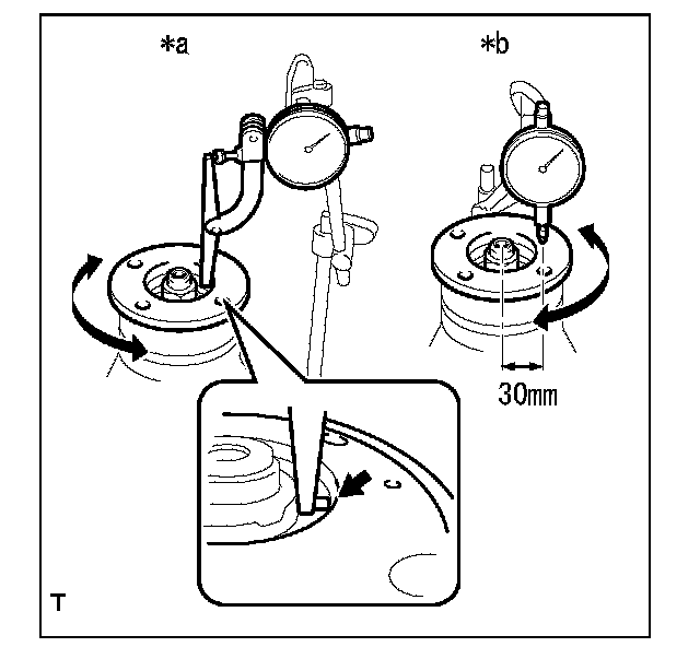(a) Contact the lever type probe of a dial gauge at a right angle to the inner circumference of the companion flange RR.
