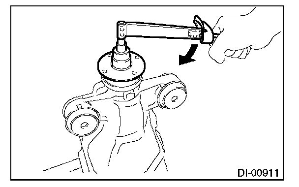 (1) Using a socket wrench (30 mm) and a torque wrench, check preload of the drive pinion within the ring gear backlash.